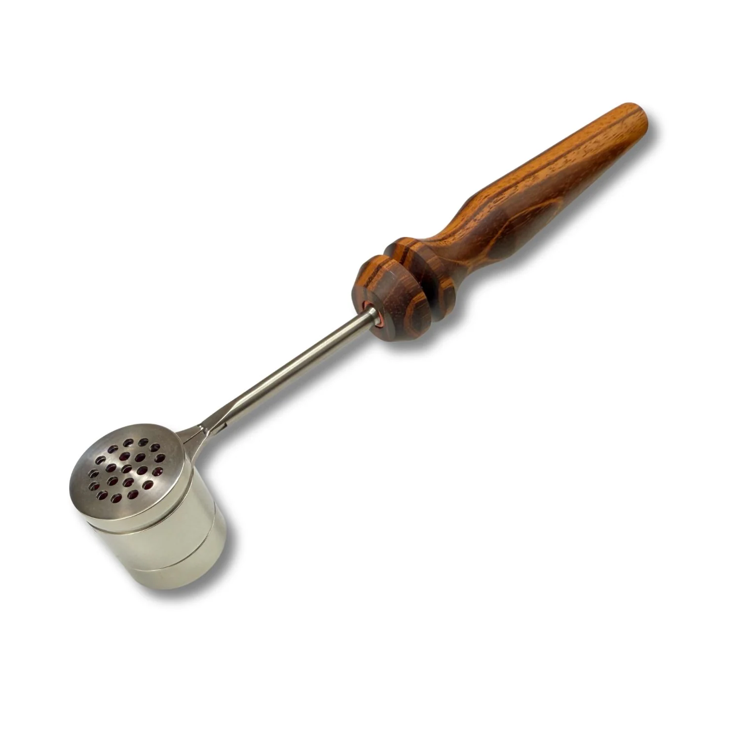 This Tigerwood Handle has a special grooved slot for placing it onto the MiniNail Heater Coil Stand while not in use.